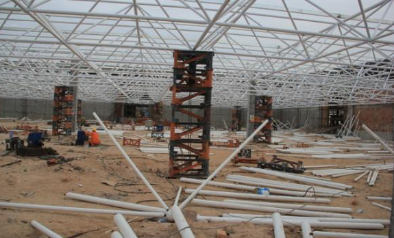 5)总体晋职法:此步履多使用在周边支护以及有多点支护的网架结构,可采取平板升降机、液压千斤顶等小型机具作业惠州施工;